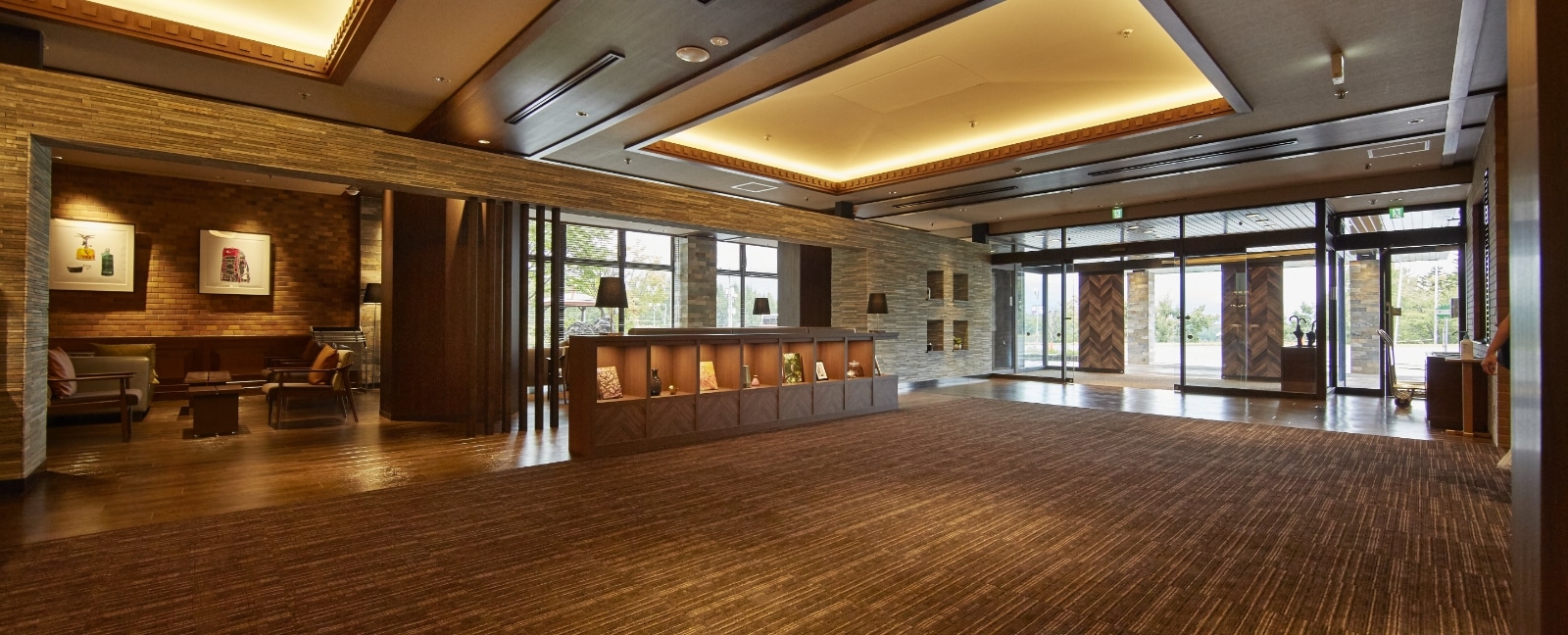 At the entrance of the hotel, the lobby lounge welcomes visitors with a lavish wooden interior and a calm atmosphere.